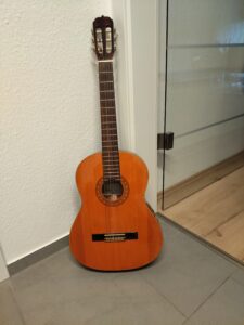 Gitarre an Selbstabholer abzugeben, mit Fußstütze
